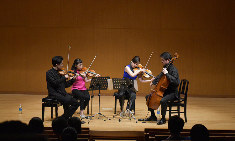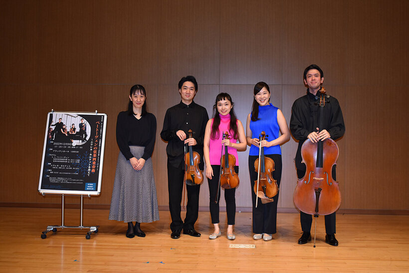 ベートーヴェンの弦楽四重奏曲2曲の演奏に加え、音楽ジャンルとしてのカルテットの重要性や演奏上の工夫、ヨーロッパ留学中の経験などについて、お話もしていただきました。
