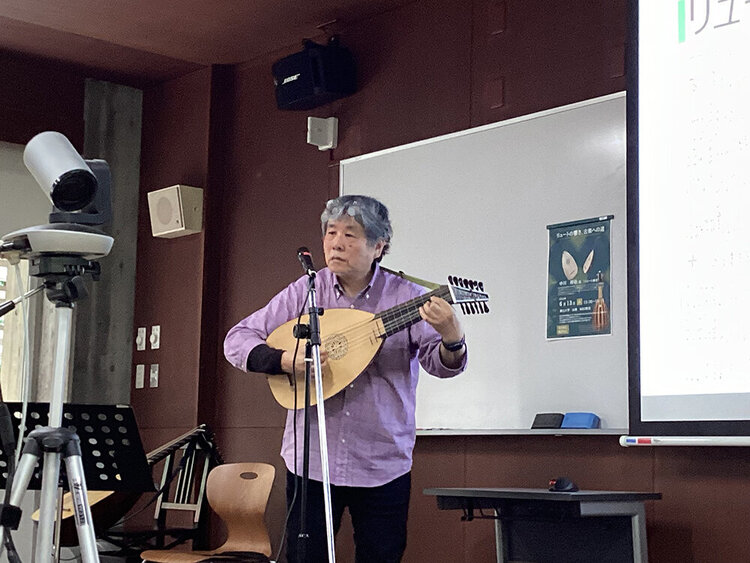 6月13日(火)に、外国語学部ドイツ学科とヨーロッパ研究センター共同主催による講演会「リュートの響き、古楽への道」を開催しました。講演者には、リュート奏者の中川祥治氏(本学外国語学部英米学科卒業生)をお招きしました。