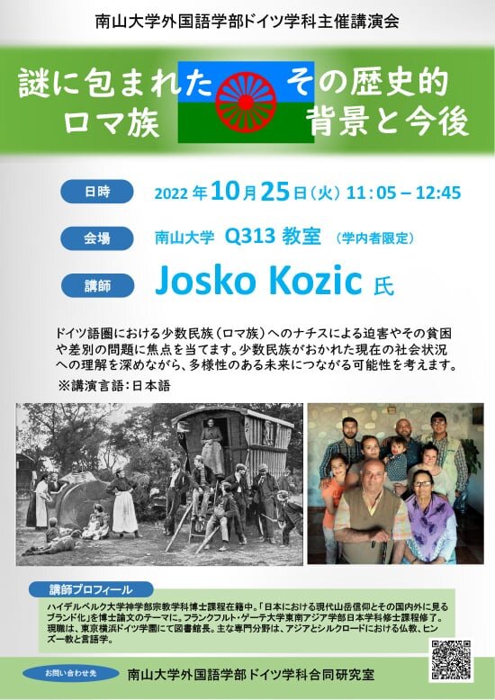 《学内者限定》2022年10月25日ドイツ学科主催講演会「謎に包まれたロマ族、その歴史的背景と今後」