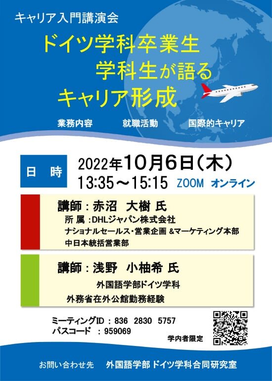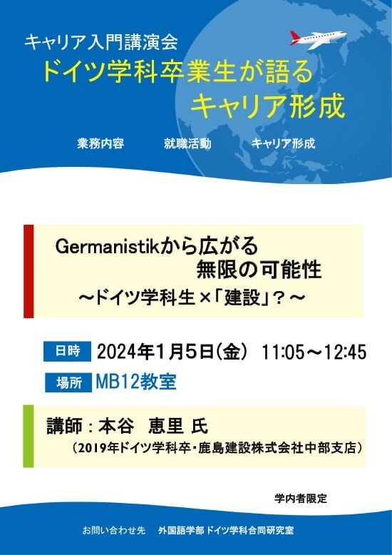キャリア入門講演会「ドイツ学科卒業生が語るキャリア形成:Germanistikから広がる無限の可能性~ドイツ学科生×「建設」?~」