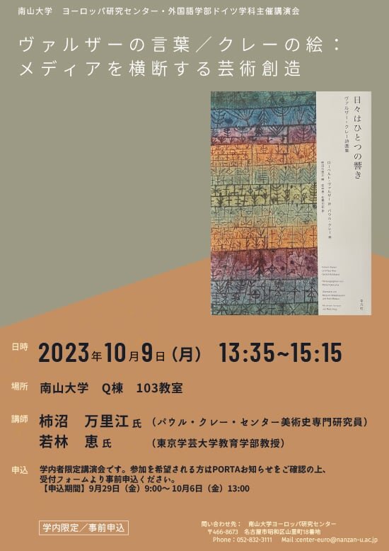 ドイツ学科、ヨーロッパ研究センター主催講演会「ヴァルザーの言葉/クレーの絵:メディアを横断する芸術創造」