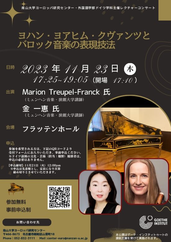 ドイツ学科、ヨーロッパ研究センター主催レクチャーコンサート「ヨハン・ヨアヒム・クヴァンツとバロック音楽の表現技法」