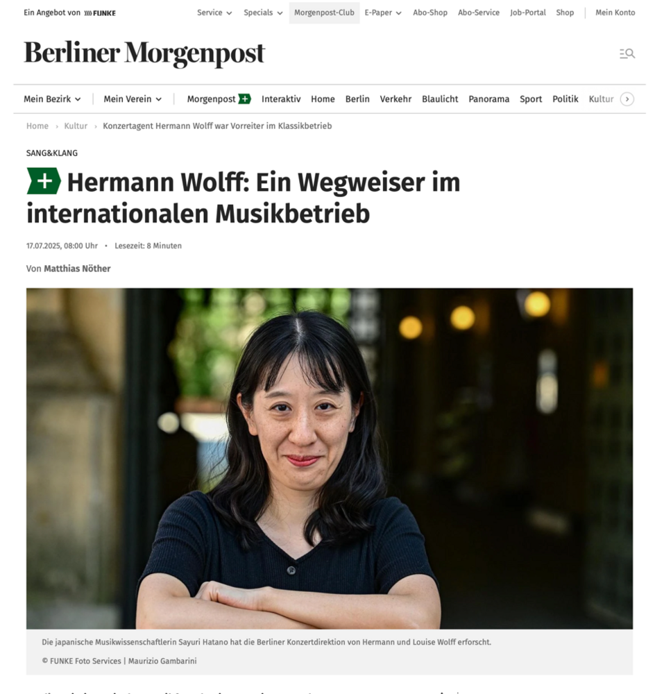 畑野先生の研究についての記事がドイツの新聞Berliner Morgenpost(ベルリーナー・モルゲンポスト)に掲載されました。(2025.7.17)
