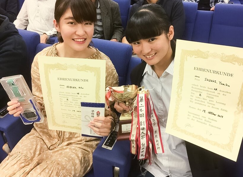 2019年10月19日(土)、駿河台大学・第28回ドイツ語暗唱大会が開催されました。南山大学ドイツ学科の学生6名が、見事2位と特別賞を受賞しました。ペア出場し2位を獲得した鈴木友美加さん、日比野未歩さん(ドイツ学科2年生)の受賞後の声をご紹介します。
