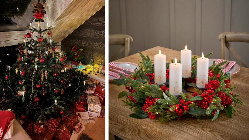 ドイツでは、クリスマスは12月24日~26日だけでなく、その前の時期にも祝われます。第一アドベントは通常11月の下旬に始まり、その日以降アドベントの期間の毎週日曜日に「アドベントリース」という飾りの上にキャンドルが灯されます。その「アドベントリース」はモミ属の枝から作られていて、よく赤色や緑色のリボンや小さいおもちゃで飾られています。自分でリースを手作る家族が多いですが、既製品を店で買うこともできます。この習慣は、家族や友達と一緒に豪華な朝ご飯を食べる事と結びついています。