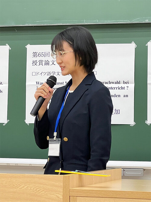 鈴木さんは2022年にドイツ学科を卒業後、国内のみならず国際学会でも発表するなど、精力的に研究者としての活動を続け、現在は博士論文の執筆に取り組んでおられます。
