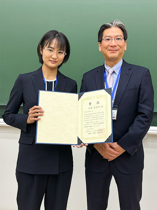 ドイツ学科を卒業した鈴木友美加さん(名古屋大学大学院博士後期課程在学)が、2025年5月に「ドイツ語学文学振興会奨励賞」を受賞しました。この賞は、ドイツ語学・ドイツ文学・ドイツ文化・ドイツ語教育の分野における36歳未満の研究者の優秀な論文を対象としたもので、ドイツ語関係の世界では若手研究者の登竜門と位置づけられています。受賞対象となった論文は、南山大学で行った研究の成果をまとめたものです。
